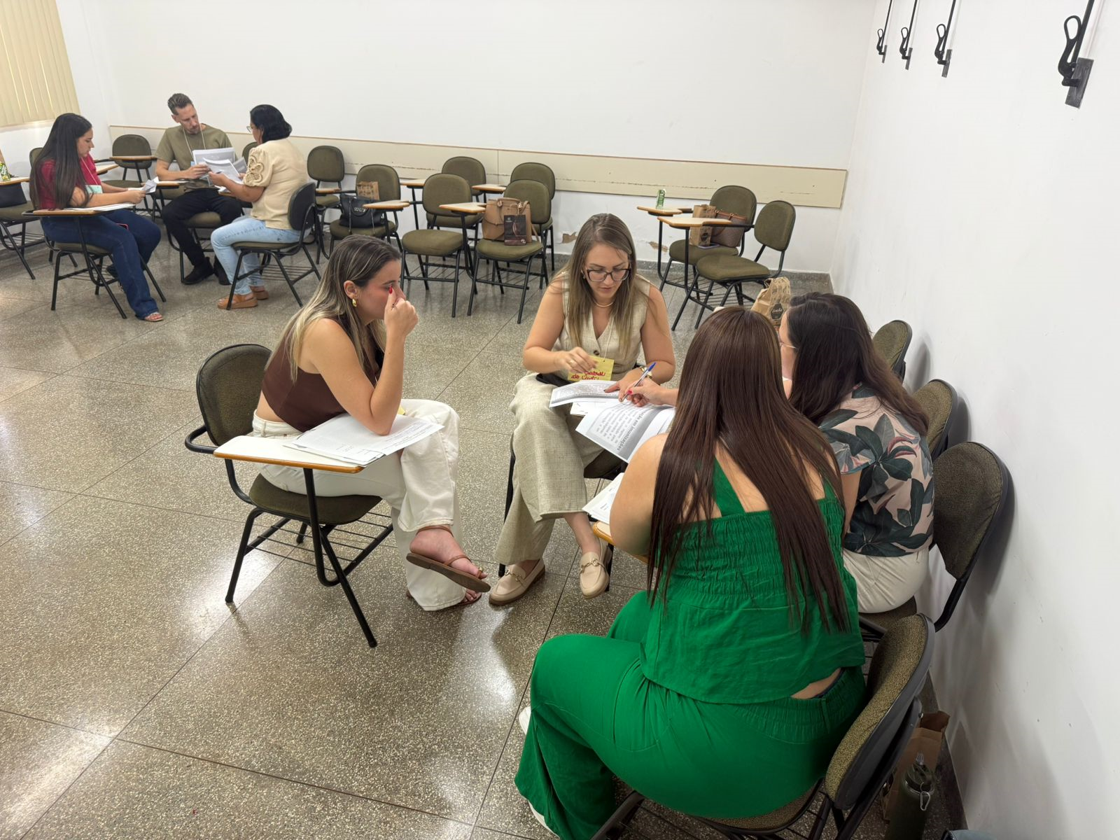 Durante a programação, os participantes foram organizados em grupos para a leitura e análise dos módulos do curso, discussão de estudos de caso, reflexões pedagógicas e atividades práticas relacionadas ao processo de ensino da vacinação BCG. A oficina também incluiu momentos de debate sobre avaliação da aprendizagem, papel do tutor como mediador do conhecimento e estratégias pedagógicas para o desenvolvimento de habilidades práticas nos cursistas.